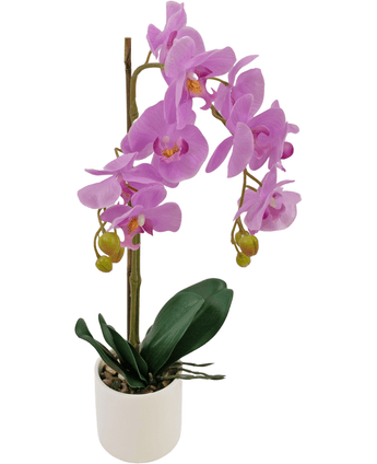 Orchidée Artificielle 52 cm Lilas dans un Pot Blanc